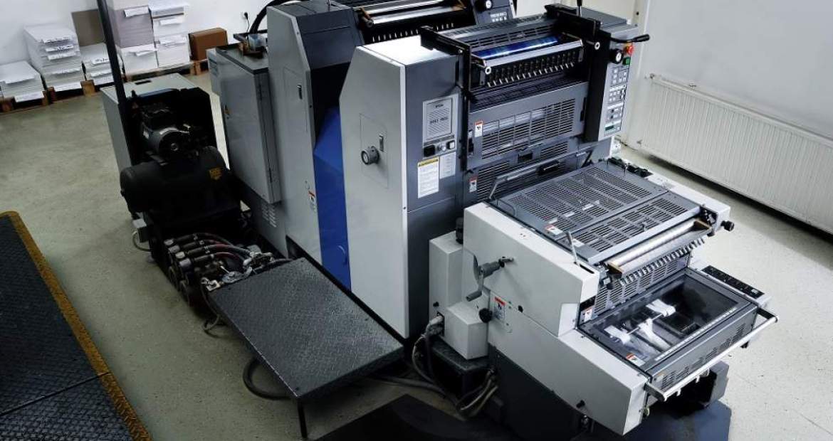 Megkímélt állapotú RYOBI 522HE kétszínes íves ofszet nyomógép NP52 számozó- és perforáló egységgel, 2007-es gyártás. A gép low-pile kirakóval, félautomata lemezcserével, Ryobimatic nedvesítőművel, Technotrans hűtőegységgel és Grafix Digitronic porzóval felszerelt.