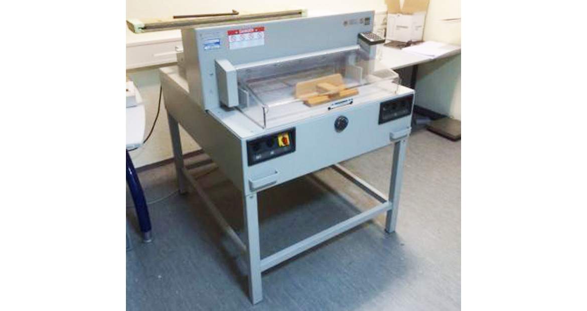 Megkímélt állapotú Ideal 6550-95 EP, 220V-os, programozható kötegvágógép frissen szervizelve, tartalék késsel
