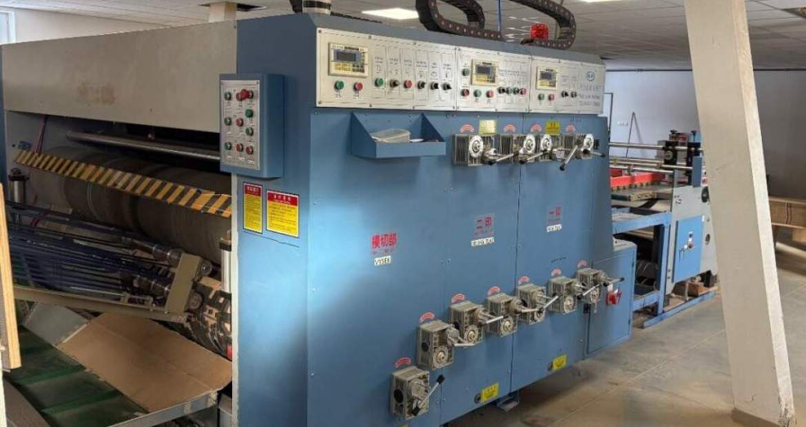 Eladó flexo 2 color slotter rotation cutting stacker gép