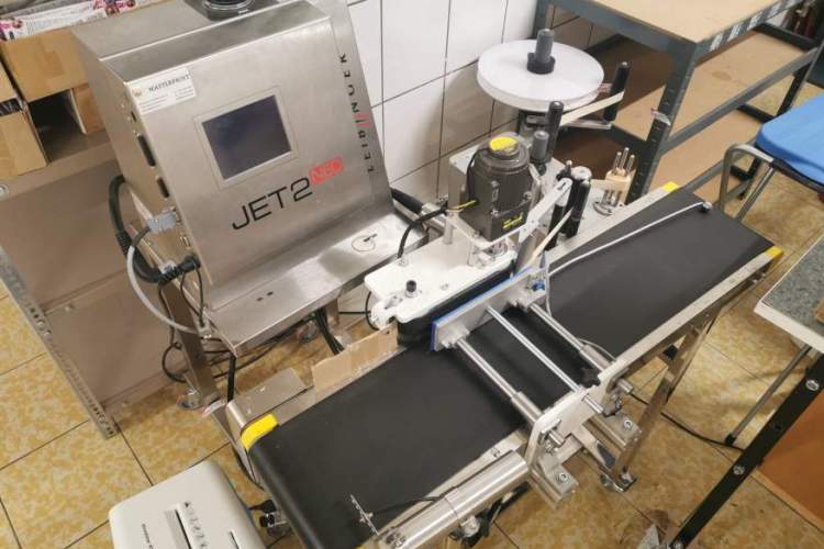 Eladó egy automatizált, hibátlanul működő Címkéző, dátumozó gépsor. Kiskarakteres jelölő: Leibinger Jet2 neo, címke adagoló, futószalag.