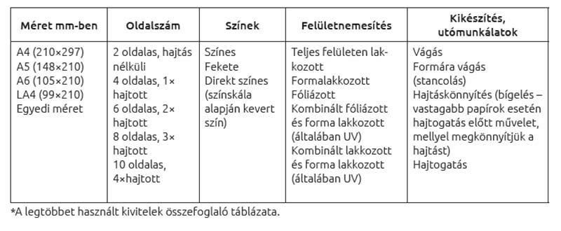 TIPP: Az alapanyag kiválasztása előtt érdemes a nyomdával akár személyesen is egyeztetni a több 100-féle lehetőség szűkítése érdekében.